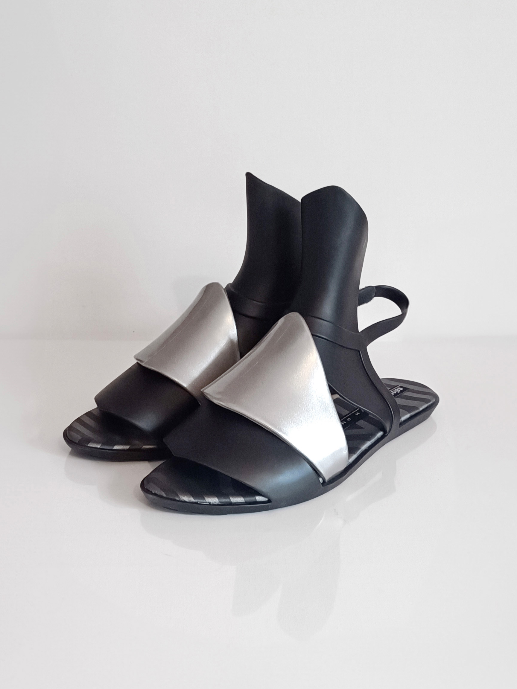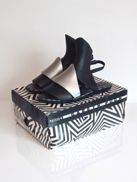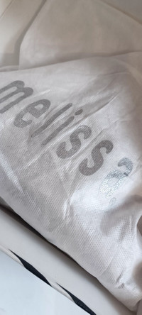 GARETH PUGH'S debut shoe collaboration with Melissa was a natural pairing, considering their mutual love of plastic as a design material. Pugh's capsule collection for the brand comprises two styles; a flat peep toe gladiator sandal adorned with Pugh signature zig-zag print which comes in combinations of black, white and silver, and inspired by the designer's spring/summer 2009 show. "The Melissa style has quite an amour-like quality to them which I love" said Pugh. "Essentially though, they're an open work sandal - nothing as weighty or as cumbersome as armour. I think they're the best of both our worlds - armour for the feet." — Pugh told British VOGUE Magazine, November 2011. (source: https://www.vogue.co.uk/gallery/gareth-pugh-melissa-collaboration) STYLE: 1013971 SIZE: 38 EU / 7 US CONDITION: NEW with OG Box RETAIL: £70 Made in Brazil If you have any questions, please feel free to contact me. Your order will be shipped in 1-3 days after bid cleared. 💬🚚💨✈️📦🌏WORLDWIDE