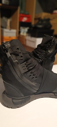 The iconic adidas Y-3 Qasa High-Top Sneaker Boot series is still unmatched to this day. While it’s not to everyone’s liking, this contemporary silhouette balances the line between urban streetwear appeal and high-fashion catwalk design. As with many Y-3 designs, the performance features are just as striking at the shoe itself. With the help of adidas, everything is designed to create exceptional comfort and long lasting durability. Yohji Yamamoto has gained a reputation for his high top styles. This vision for ultra premium and futuristic footwear is recognised as the pinnacle of design. Although these often boast a a higher than average price tag, the distinctive look cannot be replicated. • SKU: BY2629 • SIZE: US 11 / EUR 45 • COLORWAY: BLACK • CONDITION: BRAND NEW with tags • RETAIL: 455 $US • RELEASE DATE: 07/02/2017 Shipped worldwide via UPS within 48 hours after auction closed. #adidas #y3qasa #y3 #reversibletechwear #deadstock #techwear #techwearshoes #ninjawear #shinobistyle #jfashion