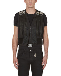 Tactical vest with velcro trim throughout ; panelled polyester technical fabrication in a mesh weave. Designed by Matthew M. Williams. [ Product details ] - V-neck - Front zip fastening - Multiple buckle fastenings - Touch fastening panels - Contrast: 55% Polyamide, 45% Cotton. - Hand wash - Made in Italy • Style ID: AX-M-OU-0396-FA01 BLK0001 • Size: OS • Supplier color: Black • Condition: Brand New with tag • Composition: 70% Polyester, 30% Polyamide • RRP: €1,790 EUR Shipped worldwide via premium carriers (DHL Express, FedEx, UPS) within 48 hours after payment cleared. *Instruction for International Buyers: Estimated Delivery: About 5~10 days with Tracking Number. Import duties, taxes, and charges are included in the item price. #1017alyx9sm #matthewmwilliams #avantgarde #darkwear #techwear #madeinitaly