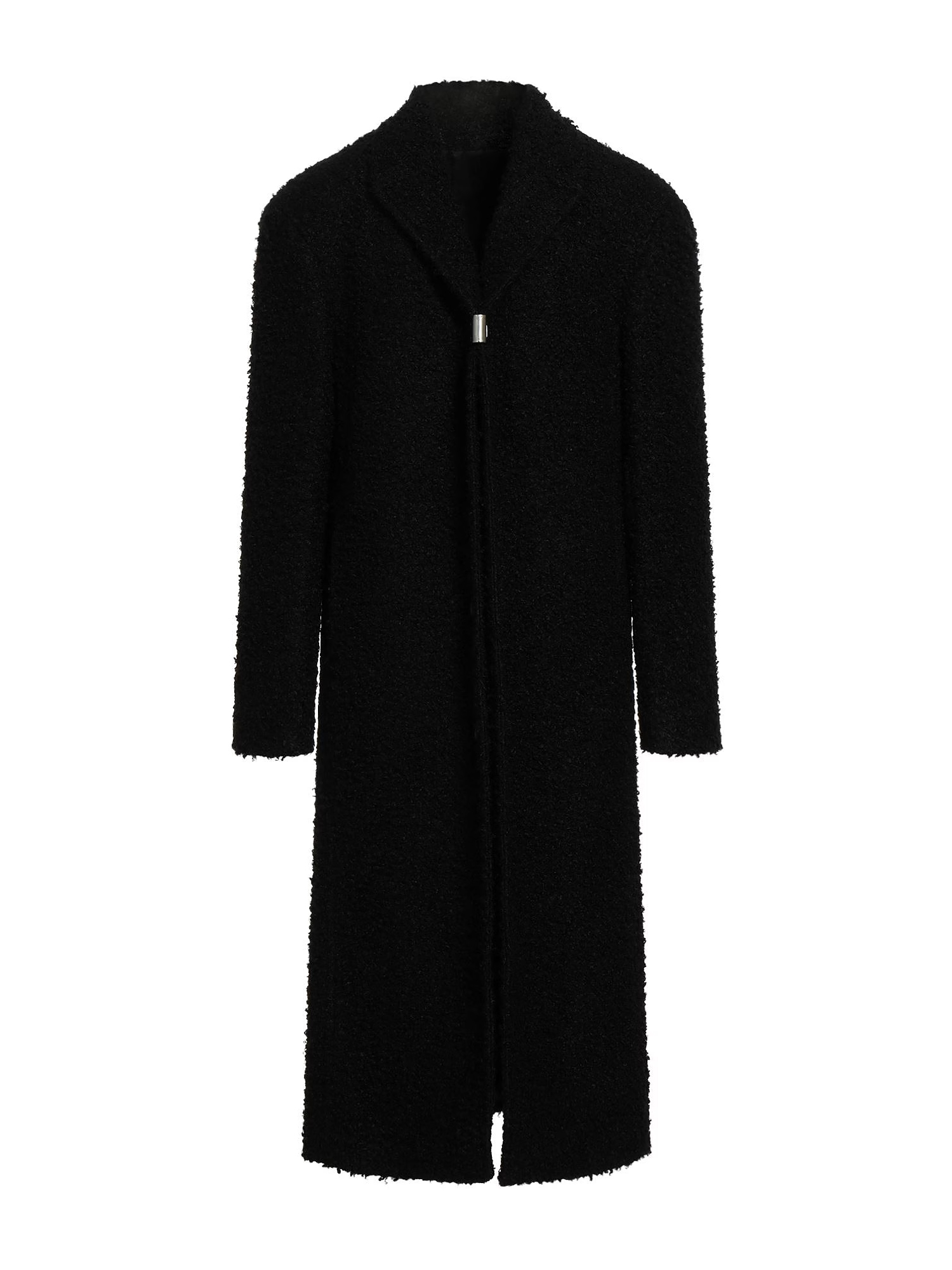 Knit bouclé polyester coat. Darts and pinched seams throughout. · Paneled construction · Logo hardware at shawl collar · Concealed button closure · Welt pockets · Padded shoulders · Full cupro twill lining · Body: 100% polyester. · Lining 1: 100% cupro. · Lining 2: 100% cotton. Size: IT46 Supplier color: Black Condition: Brand new with tag MSRP: $2,150 Shipped worldwide with premium carriers (DHL Express, FedEx, UPS) within 3-5 business days after payment cleared. *Instruction for International Buyers: Estimated Delivery: About 5~10 days with Tracking Number. Import Duties/VAT/Customs fees, are not included in the item price. Please check on your own countries policies for expected costs involved. #1017alyx9sm #matthewmwilliams #longcoat #fallwinter #darkwear #avantgarde #blackaesthetics