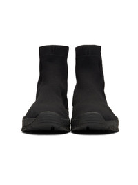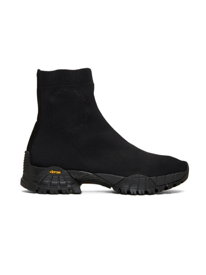 Ankle-high stretch knit Chelsea boots in black. · Round toe. · Rib knit collar. · Tonal graphic embroidered at side. · Logo embroidered in white at inner side. · Tonal suede trim at heel counter. · Tonal treaded Vibram sole. · Tonal stitching. Style ID: AAUBO0001A001 001 BLACK Supplier Color: Black Size: IT40 MSRP: $700 Shipped worldwide via premium carriers (DHL Express, FedEx, UPS) within 48 hours after payment cleared. *Instruction for International Buyers: Estimated Delivery: About 5~7 business days with Tracking Number. Import Duties/VAT/Customs fees, are not included in the item price. Please check on your own countries policies for expected costs involved. #1017alyx9sm #fw18 #boots #darkwear #avantgarde