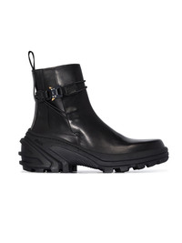 Black ankle-high buffed calfskin buckle chelsea boots from 1017 ALYX 9SM. Crafted from leather, this design features straps with the label’s signature roller coaster buckle and a black rubber sole with Vibram technology used in mountaineering boots. [ Product details ] • SIZE : US 7 / IT 40 • SUPPLIER COLOR: Black • CONDITION: Brand New with OG Box - Ankle strap with press-release fastening - Webbing pull-loop at heel collar - Treaded Vibram® rubber sole - Upper: Calfskin. Outer and Inner Layer: Leather - Made in Italy [ Measurements ] - Sole at the highest point: 8cm - Sole height: 3cm Shipped worldwide via premium carriers (DHL Express, FedEx, UPS) within 48 hours after payment cleared. *Instruction for International Buyers: Estimated Delivery: About 5~10 days with Tracking Number. Import duties, taxes, and charges are included in the item price. #1017alyx9sm #matthewmwilliams #avantgarde #darkwear #techwear #luxury #boots #blackaesthetics #madeinitaly