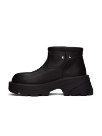 Ankle-high buffed calfskin slip-on boots in black. · Padded collar · Silver-tone rivets at sides · Wool fleece lining · Logo embossed at heel · Treaded rubber sole · Heel: H3" • Supplier color: Black • Size: IT 44 • Upper: calfskin. Sole: rubber. • Made in Italy. • Brand new with OG Box. Shipped worldwide via UPS within 48 hours after payment cleared. #1017alyx9sm #matthewmwilliams #darkwear #blackaesthetics #boots #luxury #highfashion