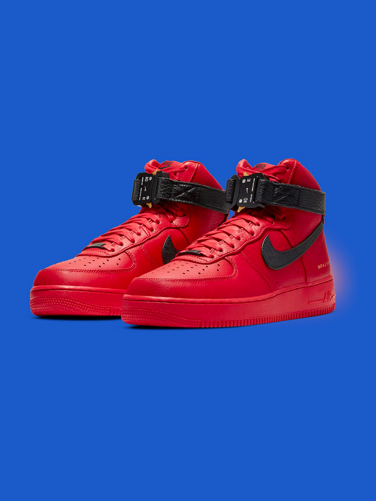 The 1017 ALYX 9SM x Nike Air Force 1 High ‘University Red’ offers Matthew M. Williams’ eye-catching take on the vintage hoops shoe. A rich scarlet hue floods the premium tumbled leather upper, secured with tonal waxed laces and accented with gold-stamped 1017 ALYX 9SM branding on the lateral heel. Contrasting black leather accents make their way to the signature Swoosh and adjustable ankle strap, featuring a dual-branded buckle in anodized aluminum. A red rubber cupsole, enhanced with encapsulated Air-sole cushioning in the heel, anchors the high-top. • STYLE: CQ4018-601 • SIZE: US 10.5 / EU 44 ½ • COLORWAY: UNIRED / BLACK • RETAIL: $450 USD • RELEASE DATE: 10/21/2021 • WORLDWIDE SHIPPING All orders are shipped via UPS within 1-3 days after payment cleared. #1017alyx9sm #nike #mmw #af1 #techwearshoes #reversibletechwear #redaesthetics #avantgarde #deadstock #rare #sneakers #nike #footwear
