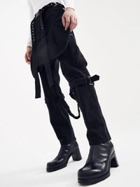 1017 ALYX 9SM Spring/Summer 2019 Vintage Black Bondage Hacker Pants presented during Matthew Williams' first show in Paris. [ Product details ] - Regular fit - Straight cut - Layered design - Detachable front overlay - Zip up closure - Rollercoaster belt buckle fastening - Belt loops - Multiple pocket construction - Strap detailing - Zipped cuffs - Metal hardware - Tonal stitching - Made in Italy • Size: IT 48 / M • RRP: $1221.00 USD • Composition: 92% Polyester, 8% Elastane • Condition: Brand New with tag Shipped worldwide via premium carriers (DHL Express, FedEx, UPS) within 48 hours after payment cleared. *Instruction for International Buyers: Estimated Delivery: About 5~10 days with Tracking Number. Import duties, taxes, and charges are included in the item price. #1017alyx9sm #ss19 #matthewmwilliams #bondage #vintage #trousers #multipocket #avantgarde #darkwear #blackaesthetics