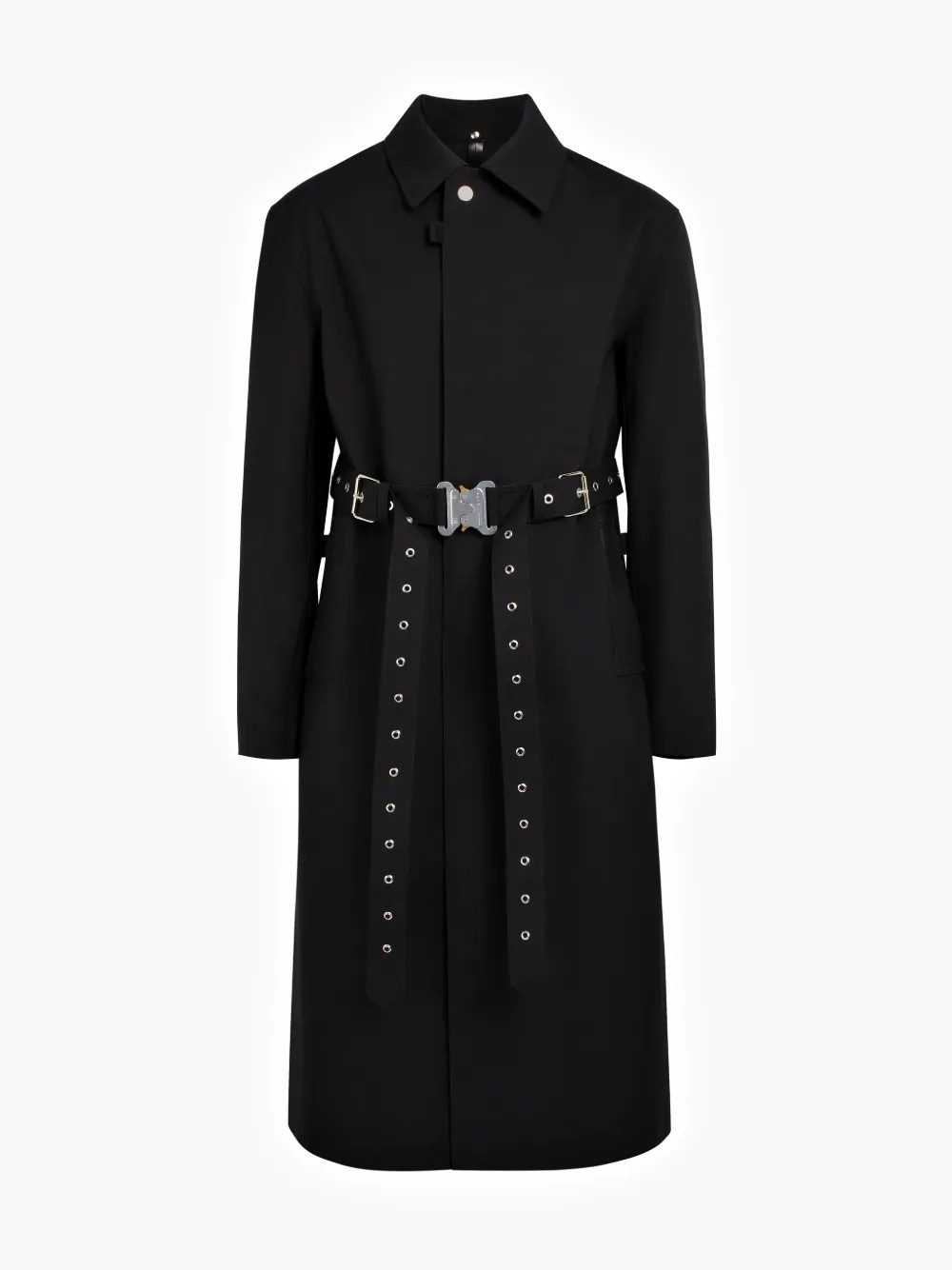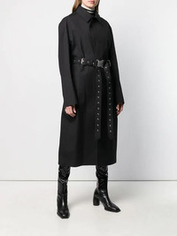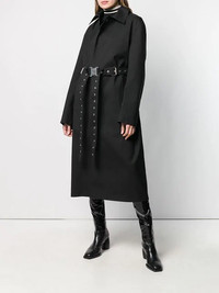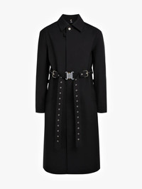 Introduced during the inaugural 1017 ALYX 9SM Spring/Summer 2019 runway show, this long sleeve bonded wool coat in black features welt pockets and detachable pin-buckle belt with ‘rollercoaster’ press-release fastening at waist. HIGHLIGHTS · Tonal taped seams throughout. · Notched lapel collar featuring spring-ring fastening. · Concealed button closure at front. · Eyelet vents at armscyes and inner sleeves. · Central vent at back featuring concealed spring-ring fastenings. · Unlined. · Logo-engraved silver-tone hardware. · Tonal stitching. · Made in United Kingdom. Part of the Alyx x Mackintosh collaboration. COMPOSITION · Body: 100% wool. · Lining: 100% cotton. Condition: Close to unused Size: XS MSRP: $2,575.00 USD Shipped worldwide via premium carriers (DHL Express, FedEx, UPS) within 48 hours after payment cleared. *Instruction for International Buyers: Estimated Delivery: About 5~7 business days with Tracking Number. Import Duties/VAT/Customs fees, are not included in the item price. Please check on your own countries policies for expected costs involved. #1017alyx9sm #mackintosh #ss19 #unisex #longcoat #trenchcoat #darkwear #avantgarde