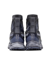 The contemporary arm of the German-born and Barcelona-based designer's brand, 11 by Boris Bidjan Saberi's experimental basics fuse the avant-garde cuts and fabrics of the main line with the street and skate influences that underpin its darkly urban aesthetic as seen with the Black & Blue Dye Salomon Edition Bamba 2 High. Boris Bidjan Saberi Shoes are polished season after season, paying accurate attention to every detail to reach the highest standards obtainable. Each pairs are unique. · Object Dye High-top piece-dyed bonded jersey, mesh, ripstop · Faux-leather trainers in Black & Blue Dye. · Panelled construction · Smudging and rubberized trim throughout. · Logo embossed at round toe and heel counter · Zip and concealed lace-up and zip closure · Logo appliqué at padded tongue. · Elasticized collar · Logo printed at outer side · Webbing pull-loop at heel collar · Mesh lining · Foam rubber midsole · Treaded Contagrip® rubber sole Part of the 11 by Boris Bidjan Saberi x Salomon collaboration. • SIZE: UK 8 / US 8.5 / EUR 42 • CONDITION: BRAND NEW w. OG Box • SUPPLIER COLOR: BACK DYE Shipped worldwide via premium carriers (DHL Express, FedEx, UPS) within 3-5 days after payment cleared. #salomon #11bybbs #borisbidjansaberi #avantgarde #experimental #deibido #consignment #techwearshoes #techwearsneakers #reversibletechwear