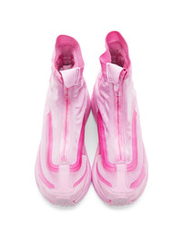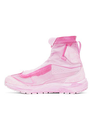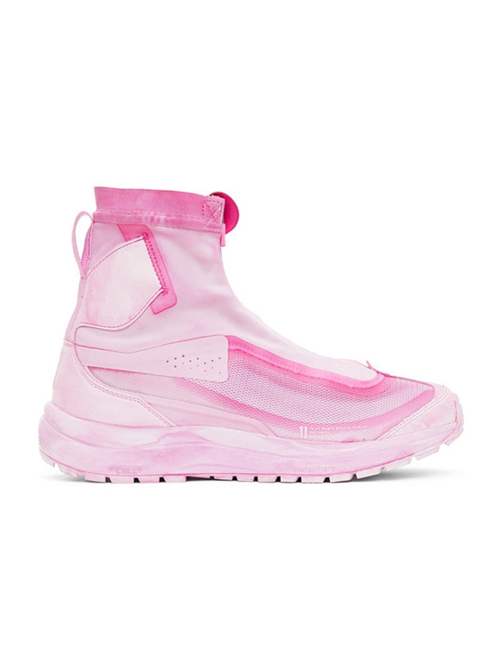 The contemporary arm of the German-born and Barcelona-based designer's brand, 11 by Boris Bidjan Saberi's experimental basics fuse the avant-garde cuts and fabrics of the main line with the street and skate influences that underpin its minimal aesthetic as seen with the 'Pink Panther' Salomon Edition Bamba 2 high-top sneakers in tones of pink garment-dyed bonded jersey, mesh and polished synthetic leather. Boris Bidjan Saberi Shoes are polished season after season, paying accurate attention to every detail to reach the highest obtainable standards. This pair of shoes stem from the performance knowledge of Salomon and the vision of 11 by BBS. An exclusive high-liable product providing comfort and protection with virtualy no break-in time. Each pair is one of a kind, resulting from an experimental and craftmade object dyeing process. *The color of this product may stain other objects, avoid contact with light colored surfaces. · Stained effect and bonded trims throughout · Embossed logo at toe and heel counter · Concealed zip and lace-up closure · Padded tongue · Elasticated collar · Printed logo at outer side · Perforated details at sides · Pull tab at heel collar · Mesh lining · Foam rubber midsole with EnergyCell™ cushioning · Contagrip® rubber lug sole Part of the 11 by BBS x Salomon collaboration. • STYLE ID: BAMBA2HIGH • SIZE: US 10 / EUR 44 Men's • CONDITION: Brand New w. OG Box • SUPPLIER COLOR: PINK PANTHER Shipped worldwide via premium carriers (DHL Express, FedEx, UPS) within 3-5 days after payment cleared. #salomon #salomonbamba #11bybbs #borisbidjansaberi #avantgarde #experimental #deibido #consignment #techwearshoes #techwearsneakers #reversibletechwear #pinkaesthetics
