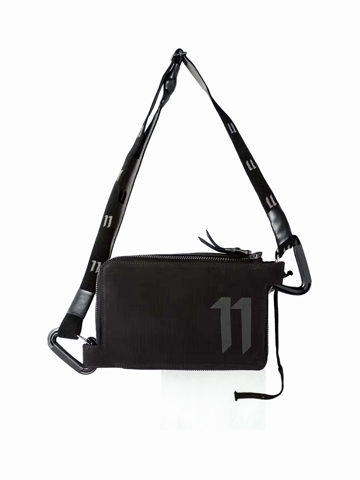 11 by Boris Bidjan Saberi Key detail wallet pouch with card slots, zippered pockets, and mesh patch pockets at interior. Detachable and adjustable webbing shoulder strap with carabiner. From 11byBBS SS20 Collection. Highlights · 11 Logo on the left · Printed branding on front · Double zippered compartment wallet · Reflective brand detail at face · Black and silver-tone hardware · Face: 42% Nylon; 58% Cotton · Back: 100% Polyester · Style Number: F-1317 · Made in Spain Approximate dimensions: · Height: 14cm · Width: 22cm · Depth: 7cm · Handle Length: 37cm • Condition: Brand new with tag • Supplier color: Black • MSRP: €295 Shipped worldwide via premium carriers (DHL Express, FedEx, UPS) within 48 hours after payment cleared. *Instruction for International Buyers: Delivery times may vary based on the destination. Estimated Delivery is about 7~10 days with Tracking Number. Import duties, taxes, and charges are included in the item price. #11bybbs #borisbidjansaberi #accessories #darkwear #blackaesthetics #デービッド