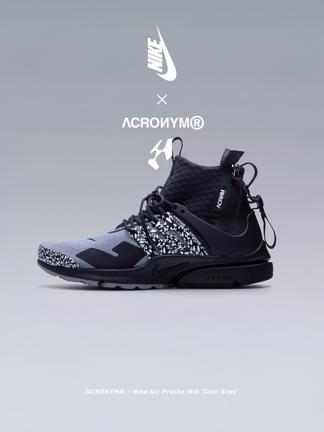 APM2-001 Nike® Air Presto Mid / Acronym® Cool Grey / Black / Black