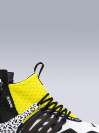 The story of the Air Presto began long before its launch in 2000. Born from the innovative minds of Tobie Hatfield and Kevin Hoffer and designed by Bob Mervar, the concept was born in 1996. Back then, Hatfield noticed that by imposing a traditional pair of running shoes, the collar would collapse slightly to conform to the foot. The shoe would provide everything a runner needs, but Hatfield wondered how he could improve the design and functionality, while taking into account consumer feedback, to create a shoe that offered the comfort of a slipper. In 2016, the ACRONYM® x Nike Air Presto Mid revolutionized sneaker culture with its radical take on the classic “t-shirt for your feet” concept. Errolson Hugh of ACRONYM® Studio explained that the collaboration began by examining failed or forgotten Air Presto prototypes. After identifying a mid-top silhouette, he worked with NikeLab designers to give it an ACRNM twist with fresh colorways and a dual-zip. The mid-top silhouette features a black and fluorescent yellow neoprene construction, a side zipper, and a leather heel counter. The design is completed with a black and white abstract geometric print, a two-tone midsole, and Acronym branding on the zippers and lacing system. The ACRONYM® x Nike Air Presto Mid 'Dynamic Yellow' was released on September 20, 2018, on Nike.com and at select retailers, priced at $200. • SKU: AH7832-100 • Size: US 8 • Colorway: White / Black-Dynamic Yellow • Retail price: $200 USD • Release date: 20/09/2018 Shipped worldwide via UPS within 48 hours after payment cleared. *Instruction for International Buyers: Estimated Delivery: About 7~10 days with Tracking Number. Import duties, taxes, and charges are not included in the item price. #nike #acrnm #acronym #airpresto #techwearshoes #avantgarde #futuristicfashion #cyberpunkaesthetic #deibido #deadstock #errolsonhugh