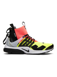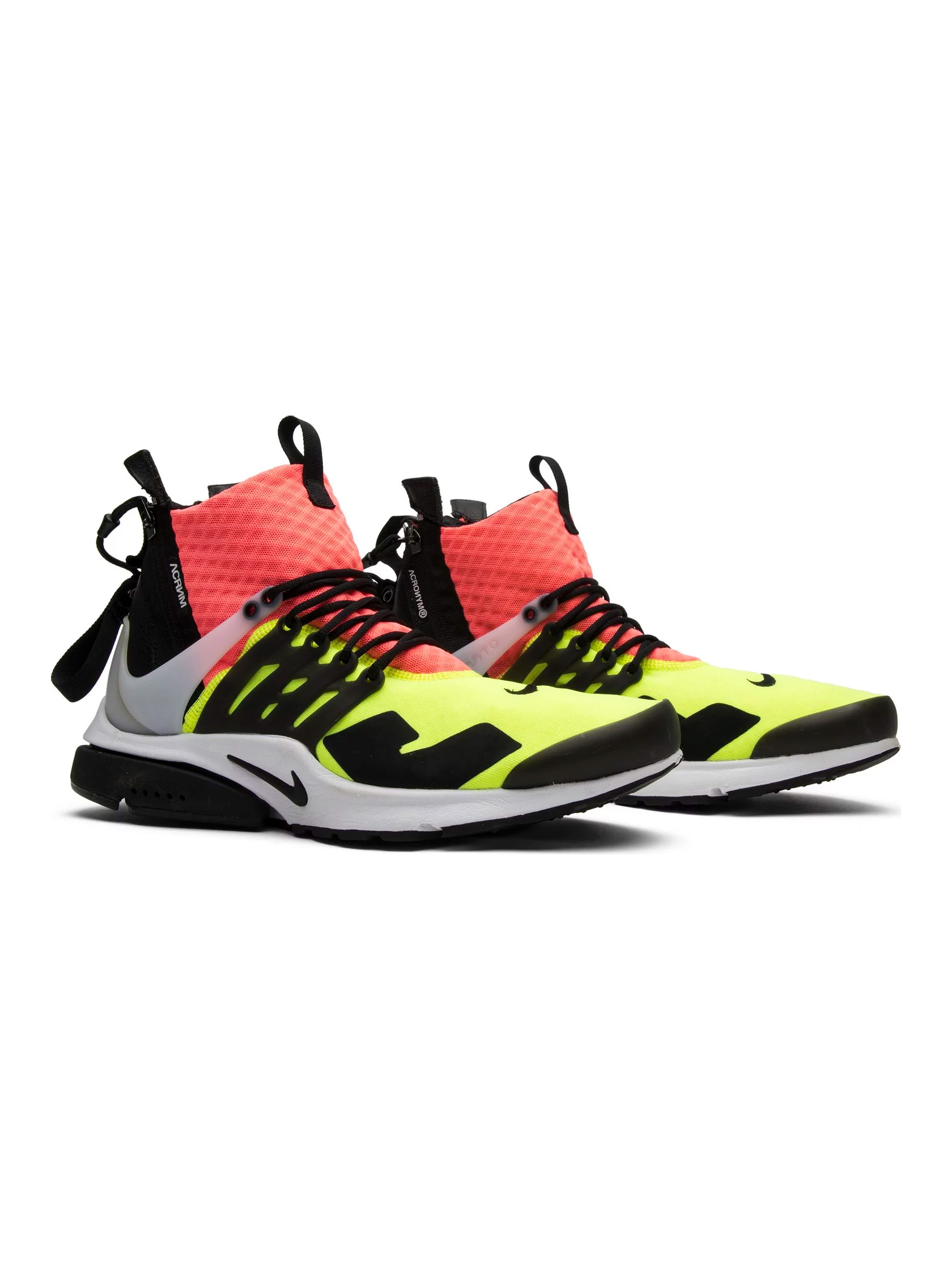 The Nike Air Presto Mid x Acronym 'Multicolor' was the collaborative creation of Berlin-based retail store Acronym and NikeLab. The design features a vibrant Volt and Hot Lava neoprene upper with side zippers, a black cage, premium leather heels, and a white and black sole. Released in September 2016, the ‘Multicolor’ dropped alongside ‘Olive’ and ‘Bamboo’ colorways. • STYLE: 844672-100 • SIZES AVAILABLE: 6-7 US • COLORWAY: WHITE/BLACK-HOT LAVA-VOLT • CONDITION: NEW with OG Box • RETAIL: $200 USD • RESELL: $400 - $800 USD • RELEASE DATE: 15/09/2016 If you require any further information, please feel free to reach out via DM. Your order will be shipped in 1-3 days after payment cleared. Thanks ! 💬🚚💨✈️📦🌏 Shipping worldwide with UPS.