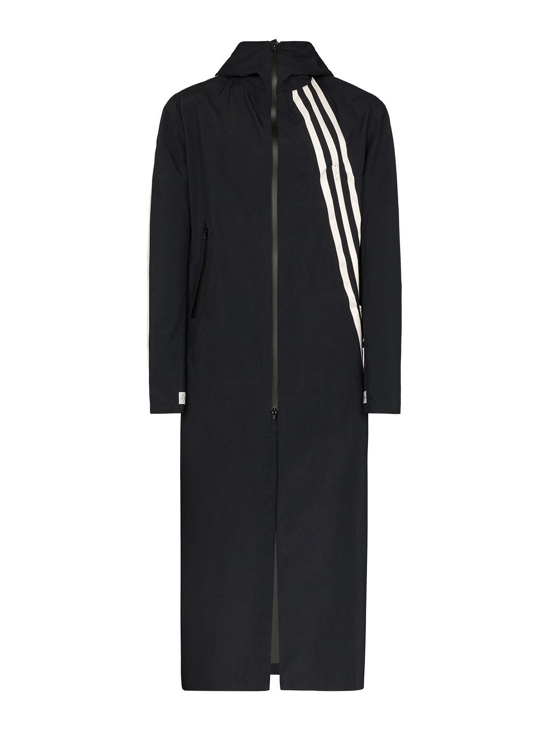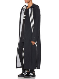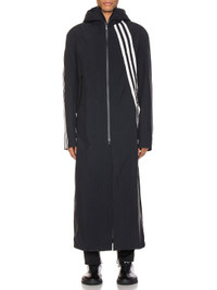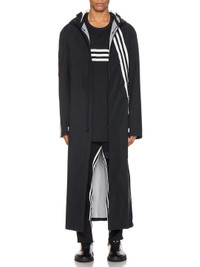 Long sleeve Gore-Tex® Infinium ™ coat in black. Concealed elasticized drawstring at hood with virgin wool lining. Two-way zip closure at front. Signature canvas stripes in off-white at front and sleeve. Two-way zippered pocket at chest. Two-way zippered vent at side-seams. Mismatched elasticized logo pull-loop in off-white and black, and tonal logo bonded at cuffs. Button fastenings at back. Unlined. Black and white hardware. Designed by Yohji Yamamoto. • Collection: Fall/Winter 2019 • Supplier color: Black/Ecru • Size: L • Retail: €640,00 EUR Shipped worldwide with premium carriers (DHL Express, FedEx, USPS) within 3-5 days after payment cleared. *Instruction for International Buyers: Estimated Delivery: About 5~10 days with Tracking Number. Import duties, taxes, and charges are not included in the item price. These charges are the buyer's responsibility. Please check out your country's customs office to determine what these additional costs will be prior to bidding. #archives #JFASHION2024 #fw19 #ワイスリー #y3 #adidasy3 #山本耀司 #yohjiyamamoto #ヨウジヤマモト #jfashion #japanesefashion #coats #longcoat #3stripe #goretex #infinium