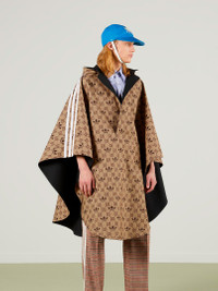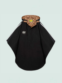 GUCCI x adidas Unisex Coat GG Trefoil All Over Cape Cloak Poncho. A second chapter in the adidas and Gucci collection collab, where the Web continues to juxtapose with the three white stripes and the GG monogram combines with the Trefoil. Inspired by the '80s and '90s, emblematic House’s motifs mix with those of the historic sportswear brand adidas resulting in a series of hybrid looks. This Gucci and Adidas limited edition collaboration cape coat features iconic logos and bright colors, with a reversible design offering two wearing options. • Sizes available: S / M • Brand: GUCCI x adidas • Beige GG Trefoil nylon on one side • Black nylon on the other • Condition: Brand New with tags • Gucci Trefoil print • Oversized • 3-Stripe appliqué • Reversible • Fixed hood • Front patch pocket • Made in Italy Shipped worldwide via UPS within 3-5 days after payment cleared. #gucci #adidas #cape #cloak #poncho #reversible #guccixadidas #unisex #luxury #highfashion