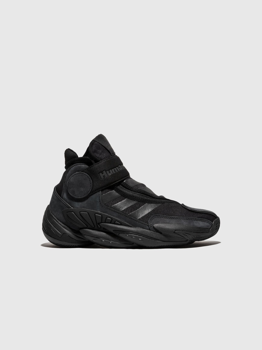 This premium adidas collaboration in triple black is drawn from a monotone footwear collection made in partnership with the prolific visionary artist and LV creative director Pharrell Williams. The Pharrell x adidas BYW 0 To 60 ‘Triple Black’ is a refreshed take on the vintage hoops shoe featuring a zippered shroud for a streamlined aesthetic. Tonal Human Race branding is inscribed on a adjustable hook-and-loop strap wrapped around the ankle. The Popular Boost midsole provides a responsive cushioning comes courtesy of the sculpted rubber outsole adding a sophisticated, modern touch, modeled after adidas 'Feet You Wear' technology from the mid '90s. · Black · Leather · Signature three-stripe logo · Tonal design · Panelled design · Ankle-length · Round toe · Front touch-strap fastening · Flat rubber sole · Outsole: 100% Rubber · Exterior: 100% Suede · Imported • SKU: GX2486 • Size: US 7½ / FR 40⅔ • Colorway: Black / Black / Black • Condition: Brand new with OG Box • Release date: 26/02/2021 Shipped worldwide via premium carriers (DHL Express, FedEx, UPS) within 48 hours after payment cleared. *Instruction for International Buyers: Estimated Delivery: About 7~10 days with Tracking Number. Import duties, taxes, and charges are not included in the item price. #adidas #humanrace #pharrellwilliams #0to60 #darkwear #blackaesthetics #deibido #데이비드