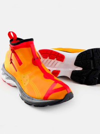 The Vivienne Westwood x ASICS Gel Kayano 27 LTX ‘Citrus’ represents one of three colorways that make up a stylish collection inspired by the British fashion designer’s latex stockings. The lifestyle runner’s sock-like upper is enveloped in a seamless orange shroud, made with semi-translucent TPU and equipped with a webbing pull tab and zip closure for easy on and off. Lightweight cushioning arrives via a two-tone FLYTEFOAM Propel midsole, enhanced with ASICS’ Gel technology in the heel. This Vivienne Westwood x Asics GEL-KAYANO 27 LTX pack was released in 2021 on Asics.com and at certain retailers. Now available on REVERSIBLE.COM • STYLE: 1201A115-800 • SIZE: US 10.5 / EU 44.5 • COLORWAY: CITRUS / BLACK • CONDITION: BRAND NEW • RETAIL: 240 $US • RELEASE DATE: 10/04/2021 • WORLDWIDE SHIPPING All orders are shipped via UPS within 1-5 business days.