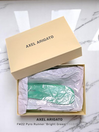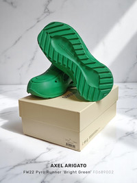 Alongside the Magma and Delta Sandals, the Pyro is an eye-catching highlight among the new arrivals for Fall/Winter 2022. This futuristically fluid silhouette was developed with the help of VR footwear expert Finn Rush Taylor. Molded entirely from EVA — a partially bio-based, lightweight rubber alternative sneakers characterized by flowing lines and perforations that highlight the organic shape. Axel Arigato's Pyro Runner represents a distinctive move towards the next chapter in footwear design. Driven by digital power, they embody Axel Arigato’s FW22 'Back to the Future' theme as well as the brand’s push to platform ever more experimental and innovative designs. The sneaker-boot hybrid silhouette lands in three tonal colorways: beige, green, and black. Thanks to the tonal finishes, the eye is drawn solely to the impactful structural lines of the design, which sees an upper and sole unit mold seamlessly together. The introduction of subtle textures throughout the design ensures that its one-piece build never feels repetitive. [ Product details ] - 10% Bio-based EVA, 90% EVA - Logo on footbed - Sole measures 40 mm /1.58 inch - If in-between sizes we recommend to go down in size - Manufactured in China • SKU: F0689002 • Size: UK 10 / US 11 / EU 45 • Supplier color: Green • Condition: Brand New with OG Box. • RRP: $210.00 USD Ready-to-ship worldwide via premium carriers (DHL Express, FedEx, UPS) within 48 hours after payment cleared. *Instruction for International Buyers: Estimated Delivery: About 5~10 days with Tracking Number. Import duties, taxes, and charges are not included in the item price. #axelarigato #pyronrunner #3Dprintedshoes #sandals #fw22 #eva #avantgarde #futurefashion #greenaesthetics #deibido