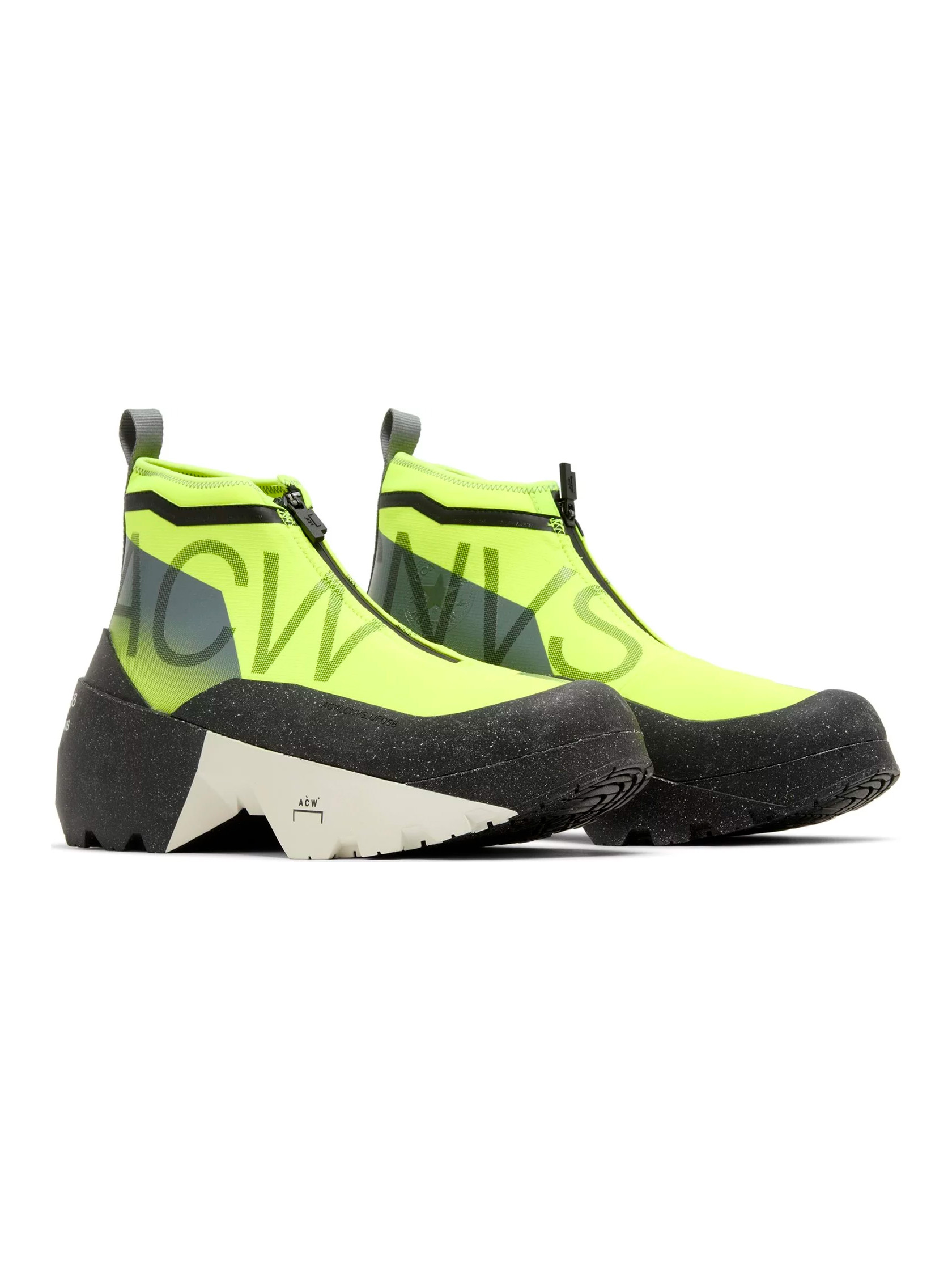 In line with the Converse Lugged Hi of 2020, the British designer Samuel Ross offers us a unique sneakerboot with a utilitarian look. This one features a neon green ripstop nylon slipper with a zipper. We also find imposing brandings and a pull on the heel. The wedge sole features a speckled white and black finish that extends onto the mudguard. Reflective industrial inscriptions on the heel refine the subversive look of the pair. • STYLE: A04164C • SIZES AVAILABLE: 6.5 / 8 / 9 US • COLORWAY: VOLT / BLACK BEAUTY / LILY WHITE • CONDITION: NEW with OG Box • RELEASE DATE: 20/12/2022 If you require any further information, please feel free to reach out via DM. Your order will be shipped in 1-3 days after payment cleared. Thanks ! 💬🚚💨✈️📦🌏 Shipping worldwide with UPS.