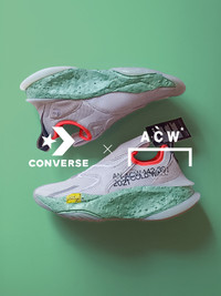 The London's label of designer Samuel Ross collaborates with the Massachusetts brand and offers us this A-COLD-WALL* x Converse Aeon Active CX “Micro Chip”. Following their previous collaboration on the Converse Lugged Hi in 2020, the two partners once again join forces and offer us a silhouette with an avant-garde design. This variant features an upper in perforated gray suede and leather. We can also find semi-translucent TPU elements, asymmetrical straps, co-branding, black and orange accents, as well as industrial type inscriptions. But the highlight lies in the imposing jade green Crater foam midsole, made from 12% recycled waste. Note that a second “Black” color accompanies the pair. The A-COLD-WALL* x Converse Aeon Active CX “Micro Chip” was released on April 12, 2022 via converse.com, priced at $160 retail. • SKU: A00679C • SIZE: US 6.5 / EUR 39 • COLORWAY: MICRO CHIP / HEALING JADE / BLACK • CONDITION: BRAND NEW WITH OG BOX Shipped worldwide with premium carriers (DHL Express, FedEx, UPS) within 3-5 days after payment cleared. #converse #acw #acoldwall #converseaeon #avantgarde #techwearshoes #techwearsneakers #techwear #samuelross