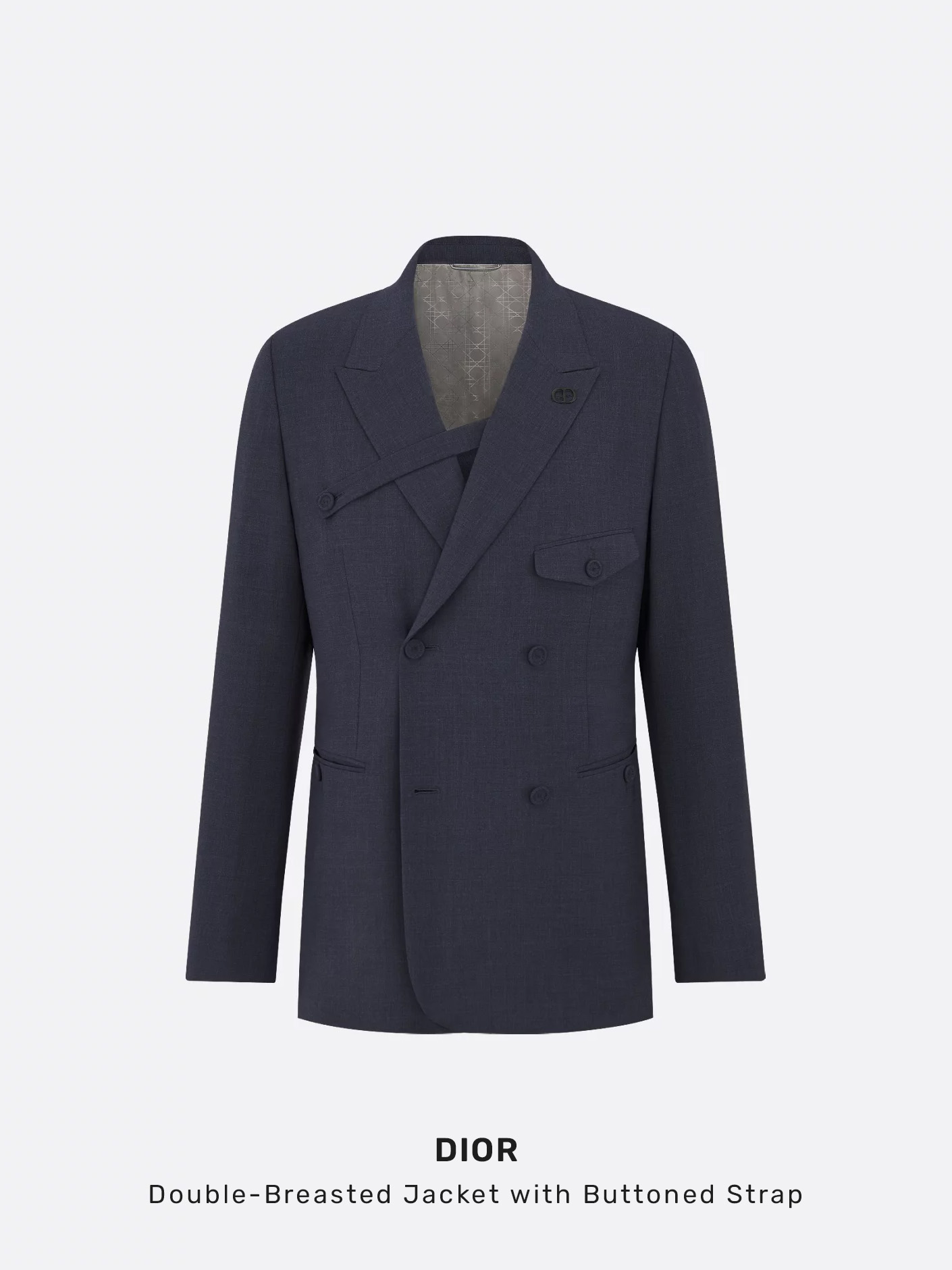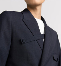 Kim Jones, Creative Director of Dior Men collections, celebrates the tailoring at the heart of Dior's heritage in a modern take on the double-breasted jacket. Crafted in a gray slub cotton blend, the design has peak lapels adorned with a removable CD Icon pin. Enhanced by a buttoned strap on the chest, the jacket can be coordinated with any pants from the Modern Tailoring collection. [ Product details ] · Peak lapels · Black matte metal removable CD Icon pin on the front · Buttoned strap · Double-breasted four-button front · Covered buttons · Buttoned chest flap pocket with side piped pockets · Interior pocket with metal button · Hallmark Cannage jacquard body and sleeve lining · Rear vent · 100% Virgin wool · Lining: 100% cupro · Made in Italy • Style ID: 7005843 • Size: 50 • RRP: €2900,00 EUR Shipped worldwide with premium carriers (DHL Express, FedEx, UPS) within 48 hours after payment cleared. *Instruction for International Buyers: Estimated Delivery: About 5~10 days with Tracking Number. Import duties, taxes, and charges are included in the item price. #dior #diorhomme #diorcouture #menswear #wool #highfashion #luxury #consignment #christiandior #deibido
