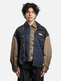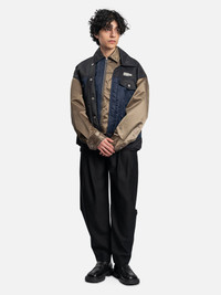 Feng Chen Wang Men's Deconstructed Double Paneled Jacket in Blue and Light Brown. Single piece jacket with outer in stitched shelf. • STYLE: FMF14JK32 • SIZE: S • DETAILS: · Regular fit · Full zip to double collar · Deconstructed Multi Color Panels · Cosmetic button closure · Interior and Exterior Lined Pockets · Model is 6'2" and wears size medium • COMPOSITION: · Material: 100% Polyamide · Inner fabric: 54.8% Polyester; 55.2% Viscose • CONDITION: Brand New w. tag • RRP: €805,00 EUR Shipped worldwide via premium carriers (DHL Express, FedEx, UPS) within 48 hours after payment cleared. *Instruction for International Buyers: Delivery times may vary based on the destination. Estimated Delivery is about 5~10 days with Tracking Number. Import duties, taxes, and charges are included in the item price. #fengchenwang #jackets #brownaesthetics #brownblue #menswear