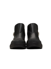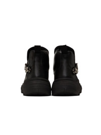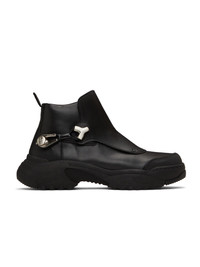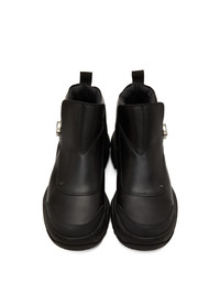 Ankle-high buffed faux-leather workwear style boots in black. Webbing pull-loop at heel collar. Logo engraved elasticized post-stud fastening at outer sides. - Style: Workwear Boot - Gender: Mens - Material: 100% synthetic - Made of faux-leather - Round toe - Padded tongue - Pull loop at heel collar - Tonal stitching - Treaded rubber sole in black - Silver-tone hardware - Made in Portugal ▪ Heel: 5.5(cm) / Height: 11.0(cm) ▪ Sole height: 3.0(cm) ▪ Size: 40 ▪ Supplier Color: Black ▪ MSRP: $450.00 USD Shipped worldwide via premium carriers (DHL Express, FedEx, UPS) within 48 hours after payment cleared. *Instruction for International Buyers: Estimated Delivery with Tracking Number may vary depending on the location. Import duties, taxes, and charges are not included in the item price. #gmbh #boots #darkwear #avantgarde #blackaesthetics #deibido