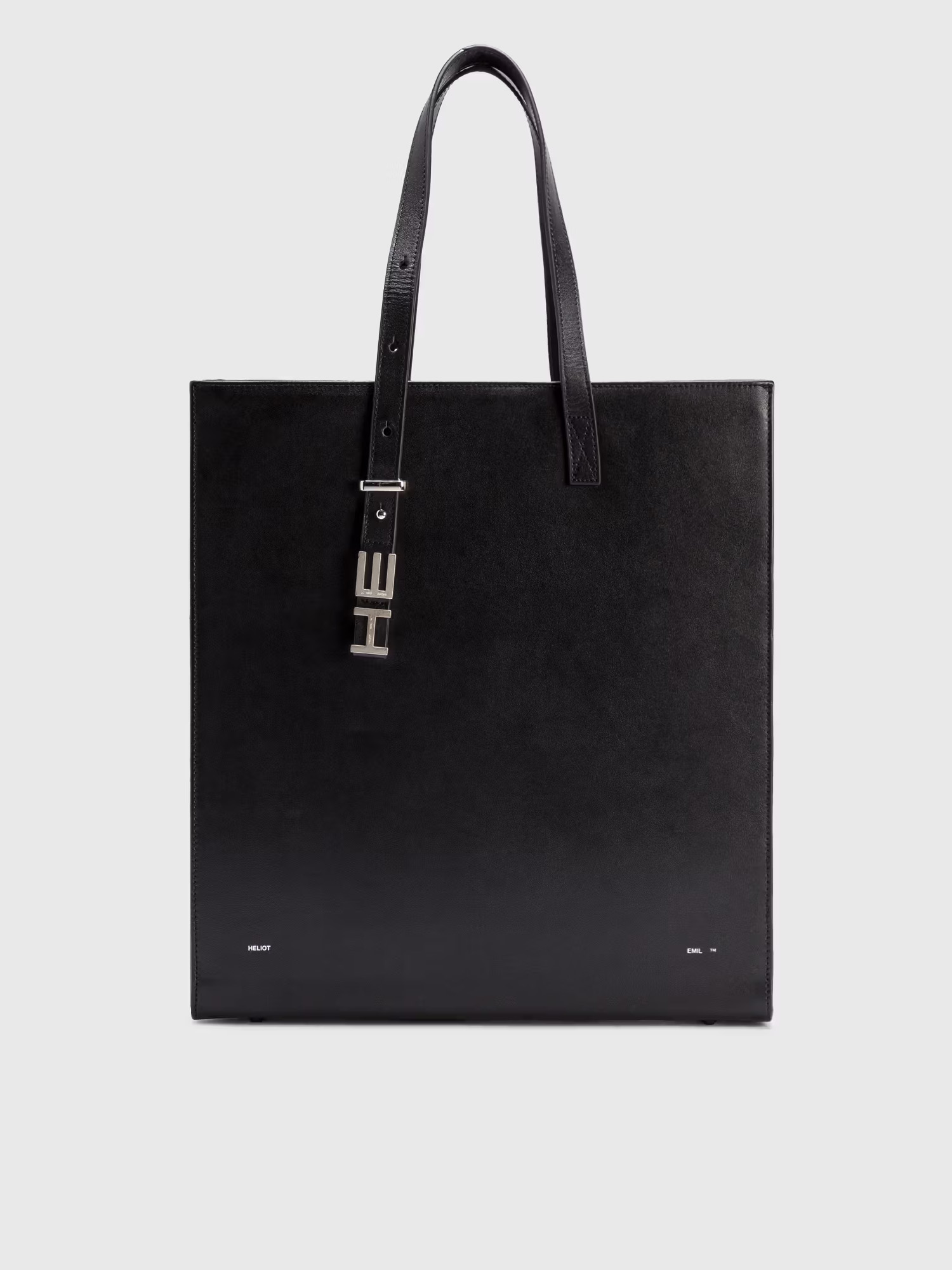 Heliot Emil Autumn/Winter 2020 Grained leather shopper in black. Features adjustable top handles with logo plaque. Bumper studs at base. Logo-engraved silver-tone hardware. Approximate dimensions: 37 x 34 x 10 cm. Strap Length: 19cm. Soldout everywhere. No restock expected. · Leather Tote Bag · "HE" metal hardware at handle · Grained calfskin exterior · Contrasting logo detail · Tonal paneling throughout · Silver-tone hardware · 1 interior card slots · Material: 100% Leather • Supplier Color: Black • Size: OS • Condition: Close to unused Shipped worldwide via UPS within 48 hours after payment cleared. *Instruction for International Buyers: Estimated Delivery: About 5~10 days with Tracking Number. Import duties, taxes, and charges are not included in the item price. #heliotemil #aw20 #juulbrothers #juliusjuul #victorjuul #techwear #accessories #avantgarde #totebag #leather #darkwear #blackaesthetics #deibido