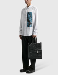 Heliot Emil Autumn/Winter 2020 Grained leather tote in black. Features logo hardware at twin adjustable leather shoulder straps with post-stud fastening. Patch pockets and logo embossed in silver-tone at face and back. Bumper studs at base. Logo-engraved silver-tone hardware. Approximate dimensions: 14 length x 15 height x 4 width. Soldout everywhere. No restock expected. · Leather Tote Bag · "HE" metal hardware at handle · Tonal paneling throughout · Front and back logo print · Adjustable top handle · 3 interior card slots · Tonal stitching · Color: Black · Material: 100% Leather • Supplier Color: Black • Size: OS • Condition: Brand new without tag Shipped worldwide via UPS within 48 hours after payment cleared. *Instruction for International Buyers: Estimated Delivery: About 5~10 days with Tracking Number. Import duties, taxes, and charges are not included in the item price. #heliotemil #aw20 #juulbrothers #juliusjuul #victorjuul #techwear #accessories #avantgarde #totebag #leather #darkwear #blackaesthetics #deibido