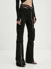 Slim fit cotton cargo pants, featuring zip detailed on waistband & legs. [ DETAILS ] · 100% Cotton · Slim Cargo fit · 2 patch pockets · 2 side inset pockets · Flared · Front button and zip fastening · Zip details with hidden volume · New custom cold dye wash · Cut-out detailing · Made in Italy [ CARE INSTRUCTIONS ] · Do Not Wash · Do Not Bleach · Do Not Tumble Dry · Iron On Low · Dry Clean • STYLE ID: AW23_W_10_124_BLK01 • SIZE: 34 = XXS • CONDITION: Brand new with tag • MSRP: €550,00 EUR Shipped worldwide via premium carriers (DHL Express, FedEx, UPS) within 3-5 days after payment cleared. #heliotemil #aw23 #darkwear #womenswear #blackaesthetics