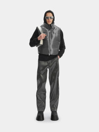 Trousers in Heliot Emil signature liquid metal fabric. · Regular fit · Straight leg · 2 Pockets on front and back · Liquid metal fabric · Reflects light and morphs according to the angle of perception · Pockets in front, single pocket in the back · Embroidered HE logo on left thigh · Model is 188cm wearing size M / 48 · Due to the experimental nature of the fabric the fit and feel is different from normal trousers • STYLE ID: AW20_M_393 • SIZE: L / 50 • CARE INSTRUCTIONS Machine wash cold gently Do not bleach Do not tumble dry Iron low heat Dry clean only • COMPOSITION 81% Polyester 19% Viscose • CONDITION: Brand new with tag • COLOUR: Metallic • MSRP: €550,00 EUR Shipped worldwide via premium carriers (DHL Express, FedEx, UPS) within 48 hours after payment cleared. *Instruction for International Buyers: Estimated Delivery about 7~10 business days with Tracking Number. Import duties, taxes, and charges are not included in the item price. #heliotemil #aw20 #avantgarde #liquidmetal #trousers #futuristicfashion #luxury #unisex #silveraesthetics #juliusjuul #victorjuul