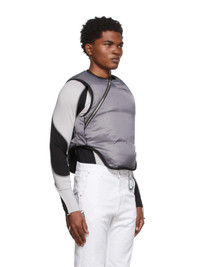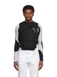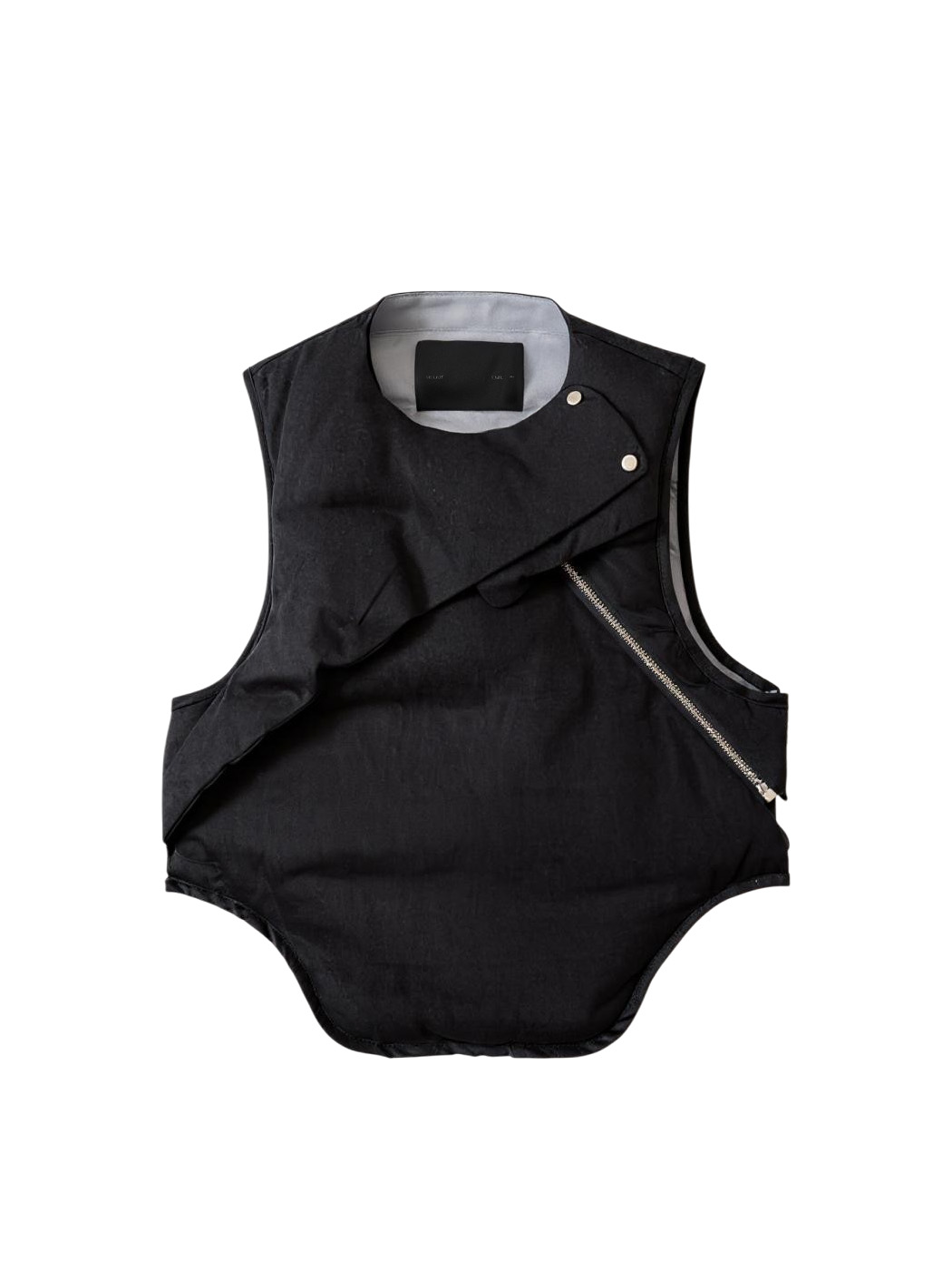 Reversible padded vest with rubberized velcro tab and concealed press-stud closure at side-seams. · Padded cotton twill vest. · Wrap construction at press-stud placket. · Reverse in grey nylon taffeta. · Offset zip closure · Curved hem Supplier · Body 1: 100% cotton. · Body 2: 100% nylon. · Fill: 100% polyester. • Supplier color: Black • Condition: Close to unused without tag • MSRP: $800 Shipped worldwide via premium carriers (DHL Express, FedEx, UPS) within 48 hours after payment cleared. *Instruction for International Buyers - Estimated Delivery: About 7~10 business days with Tracking Number. Import duties, taxes, and charges are not included in the item price. #heliotemil #avantgarde #blackaesthetics #darkwear #deibido #reversible #consignment #unisex #juliusjuul #victorjuul #luxury #highfashion #vest
