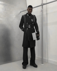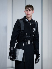 This remarkable long black trench coat is the perfect amalgamation of all the utilitarian elements seen throughout the Heliot Emil Fall/Winter 2019 '311 FPS' collection. The coat features a detachable military vest that has a number of zippered compartments and a silver carabiner. The coat itself displays 2 oversized silver buckles with a small brand engravement along with silver buckles to cinch to the cuffs. Finished with silver toned hardware and zipper front closure. Soldout everywhere. No restock expected. [ Product details ] · Avant-Garde Aesthetic · Buckle and Carabiner hardware · 2-in-1 Detachable Vest · Regular Fit TTS · Fabric: 100% Nylon · Lining: 100% Polyester · Made in Italy · Imported • Collection: Fall/Winter 2019 • Condition: Brand new without tag • Size: L (Bonus: Gloves included) • RRP: $1443,00 USD Ready-to-ship worldwide via premium carriers (DHL Express, FedEx, UPS) within 24 hours after payment cleared. *Instruction for International Buyers: Estimated Delivery: About 7~10 days with Tracking Number. Import duties, taxes, and charges are included in the item price. #archive #runwaypiece #heliotemil #juulbrothers #fw19 #avantgarde #techwear #matrix #copenhagenfashionweek #CPHFW #juliusjuul #victorjuul #danishdesigner #deibido #trenchcoat #longcoat #darkwear #blackaesthetics #blackinspo #rare