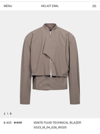 HELIOT EMIL™ Stretch nylon taffeta blazer jacket. Designed by Juul brothers. • DETAILS: · Layered construction · Two-way zip closure with press-stud placket · Logo embroidered at front · Welt pocket · Adjustable press-stud tab at cuffs · Partial satin lining · Supplier Color: Washed out khaki • CONDITION: Brand New with tags • RETAIL: €650 EUR Shipped worldwide via UPS within 3-5 days after payment cleared.