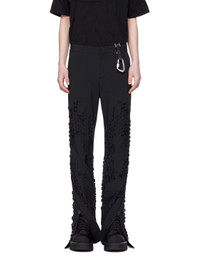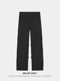 The HELIOT EMIL™ SS24 collection, titled ‘The Chemical Basis of Morphogenesis’ draws inspiration from an article by mathematician and computer scientist Alan Turing written in 1952. Here, Turing explains the algorithmic relationship between unique patterns formed in nature and mathematics. Intrigued by this, Creative Director Julius Juul sought to capture the interesting dynamic and complexity of morphogenesis in a collection that blends unique textures and patterns, with calculated mathematical approaches. The 'Morphogens' is a technical trouser made out of a lightweight polyester in a custom lasercut pattern, placed on front and back. Angled zips at hem make it possible to change the leg into a slight flare. [ Product details ] · Regular fit, unrestricted and comfortable · 100% Polyester · Supplier color: Black · Concealed front fastening · Ankle zips · Angled coil zips at bottom legs under continous zip placket · 'H'-beltloops at back waistband · Two diagonal pockets to the sides · Two rear flap pockets · Placed and panelled lasercut fabric in custom pattern · Mid-rise straight-leg trousers · Model is wearing size M / 48 [ Care instructions ] · Machine Wash Warm · Do Not Bleach · Tumble Dry · Iron On Low · Dry Clean • Size: IT 48 • Collection: Spring / Summer 2024 • Condition: Brand New with tag • RRP: €850,00 EUR Ready-to-ship worldwide via UPS within 48 hours after payment cleared. #heliotemil #ss24 #morphogenesis #technicalpants #highfashion #concept #laser #technology #darkwear #blackaesthetics #blackinspo #techwear #avantgarde #juliusjuul #victorjuul #deibido #エリオットエミル