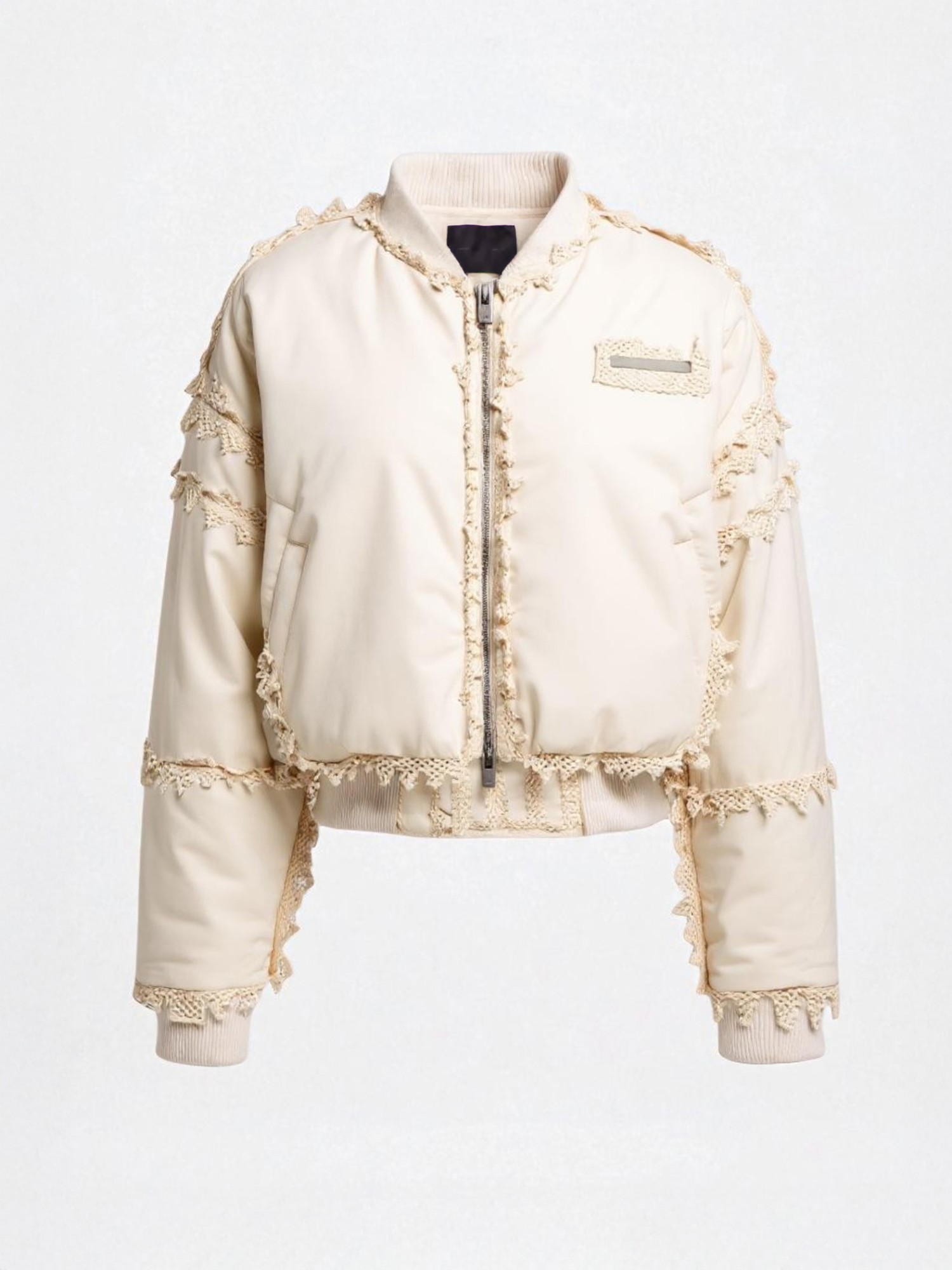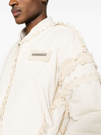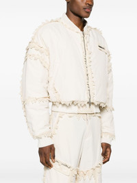 Spherical padded bomber jacket from HELIOT EMIL™ PRESS24 Collection by Juul Brothers. Designed to be unstructured, offering a loose fit throughout. The elasticated hem allows for movement and a comfortable fit. Made from a midweight non-stretch fabric, this piece fits true to size – take your usual size. • HIGHLIGHTS · Ecru · Silver-tone logo plaque to the chest · Crochet detailing · Ribbed trim · Padded design · Baseball collar · Front two-way zip fastening · Drop shoulder · Long sleeves · Two press-stud fastening side pockets · Velcro fastening at hem · Straight hem · Full lining · Imported • COMPOSITION Main 1: 100% Nylon Main 2: 100% Cotton Filling: 100% Polyester. • MODEL MEASUREMENTS Height 6 ft 3 in(1.9 m) Bust/Chest 37.79 in(96 cm) Hips 35.43 in(90 cm) Waist 27.95 in(71 cm) • Style ID: PRESS24M02109ST18 • Size: S • Supplier color: Stone • Condition: Brand new with tag • MSRP: $1,166 Shipped worldwide via premium carriers (DHL Express, FedEx, UPS) within 48 hours after payment cleared. *Instruction for International Buyers - Estimated Delivery: About 5~7 business days with Tracking Number. Import duties, taxes, and charges are included in the item price. #heliotemil #press24 #avantgarde #beigeaesthetics #minimalfashion #deibido #consignment #juliusjuul #victorjuul #highfashion #luxury