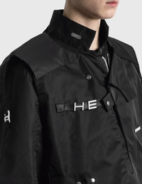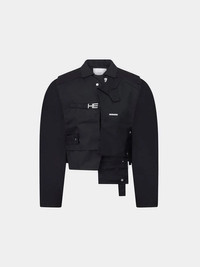 Heliot Emil™ has made waves since its inception in 2017, blending technical textiles with progressive styling for a fashion-forward take on functionality. This long sleeve cropped nylon twill jacket in black from Juul Brothers Spring/Summer 2020 'Torqued Ellipse' collection is testament of their avant-garde vision. • DETAILS · Supplier color: black · Bullfighter Jacket · Spread collar · Regular fit · Cropped length · Metal HE logo hardware at chest · Adjustable press-stud fastening at sleeves · Layering design · Concealed zip closure · Layered construction · Concealed zip closure at front · Concealed welt pockets at waist · Detachable carabiner at front hem · Detachable vest-style overlay · Overlay panel at shoulders with hook-eye fastening · Tonal satin lining · Silver-tone hardware · Model is 6'3" wearing size 50 • CONDITION: Like New • RRP: $1,032 Shipped worldwide via premium carriers (DHL Express, FedEx, UPS) within 48 hours after payment cleared. *Instruction for International Buyers: Estimated Delivery: About 5~10 days with Tracking Number. Import duties, taxes, and charges are included in the item price. #archive #heliotemil #unisex #bullfighterjacket #darkwear #avantgarde #layering #layeredjacket #blackaesthetics #blackinspo #juliusjuul #victorjuul #techwear #runway #ss20