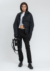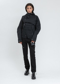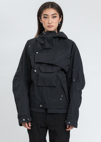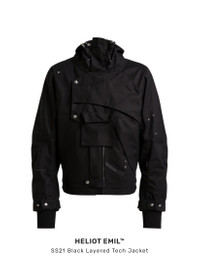 HELIOT EMIL™ Spring/Summer 2021 Unisex Layered Tech Jacket. Water repellent but breathable. There are juxtaposed metal eyelets and biding tape details. And some technical details like built in cuff gloves and adjustment straps. Finished with tonal tape detailing, tonal stitching, backpack straps at the interior, and a concealed pocket at the lower back. · Slim fit · Asymmetrical details with 1 removable pocket. · Black layered technical windbreaker shell. · Features a slim, slightly cropped construction. · Overlapping asymmetric panels across the front face. · Concealed zipper fastening. · Funnel collar with tonal drawstrings. · Concealed zip pocket at the left cuff. · Adjustable cuffs. · 100% Polyester · Imported ▪ Size: M ▪ Supplier color: Black ▪ Condition: Unused, without tag. Female model is 5'10" (178 cm), 100 pounds (45 kg), wears size S. Male Model is 6'3" (189 cm), 140 pounds (68 kg), wears size M. Shipped worldwide via premium carriers (DHL Express, FedEx, UPS) within 48 hours after payment cleared. *Instruction for International Buyers: Estimated Delivery: About 5~10 days with Tracking Number. Import duties, taxes, and charges are not included in the item price. #archive #heliotemil #ss21 #juliusjuul #victorjuul #avantgarde #unisex #jacket #techwear #reversibletechwear #darkwear #blackaesthetics #highfashion #luxury #deibido