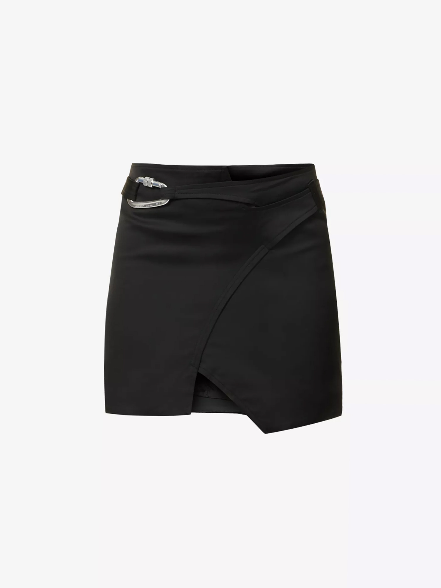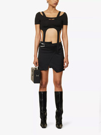 When flicking through the looks that emerged from HELIOT EMIL's SS22 runway, you're sure to spot a recurring theme: nearly every piece boasted a gleaming metal embellishment. Playing on the label's industrial-inspired direction for the season is this skirt. Stitched from a soft wool blend, this thigh-grazing style wraps around your curves before being fastened with a carabine clasp at the hip. - Carabiner-clasp split-hem wool-blend mini skirt - concealed zip fastening at back - true to size - regular fit - mid-rise - structured waistband - buckle at waist - branded silver-toned hardware - lightweight - slight stretch - split hem - lined CARE - Hand wash cold - Do not bleach - Do not tumble dry - Iron low heat - Dry clean COMPOSITION 76% viscose, 22% virgin wool, 2% elastane COLLECTION SS22 Permanent Metamorphosis CONDITION Brand new with tag SIZE 36 / S STYLE ID HE_W_12_005_M02_BLK01 Shipped worldwide via premium carriers (DHL, FedEx, UPS) within 48 hours after payment cleared. *Instruction for International Buyers: Estimated Delivery: About 7~10 days with Tracking Number. Import duties, taxes, and charges are not included in the item price. #heliotemil #ss22 #womenswear #darkwear #avantgarde #blackaesthetics #skirt