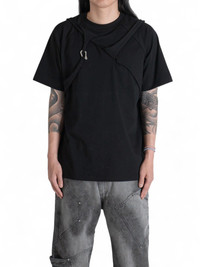 · Boxy fit layered t-shirt · Oversized fit · Integrated harness · Strap with small carabiner · Reglan sleeves · M Length 66 Chest 116 Sleeve Length 38 (cm) · Model is 171cm / 54kg and wears size S. • Size: M • Supplier color: Black • Material: 100% Cotton • Condition: Close to unused without tag Shipped worldwide via premium couriers (DHL Express, FedEx, UPS) within 48 hours after payment cleared. *Instruction for International Buyers: Estimated Delivery: About 5~10 days with Tracking Number. Import duties, taxes, and charges are not included in the item price. These charges are the buyer's responsibility. Make sure to check out your country's customs office to determine what these additional costs will be prior to bidding or buying. #heliotemil #juulbrothers #darkwear #blackaesthetics #oversize #tshirt #carabiner #avantgarde #luxury #deibido
