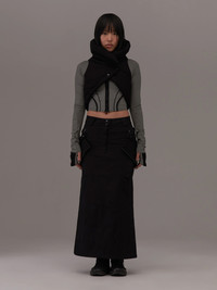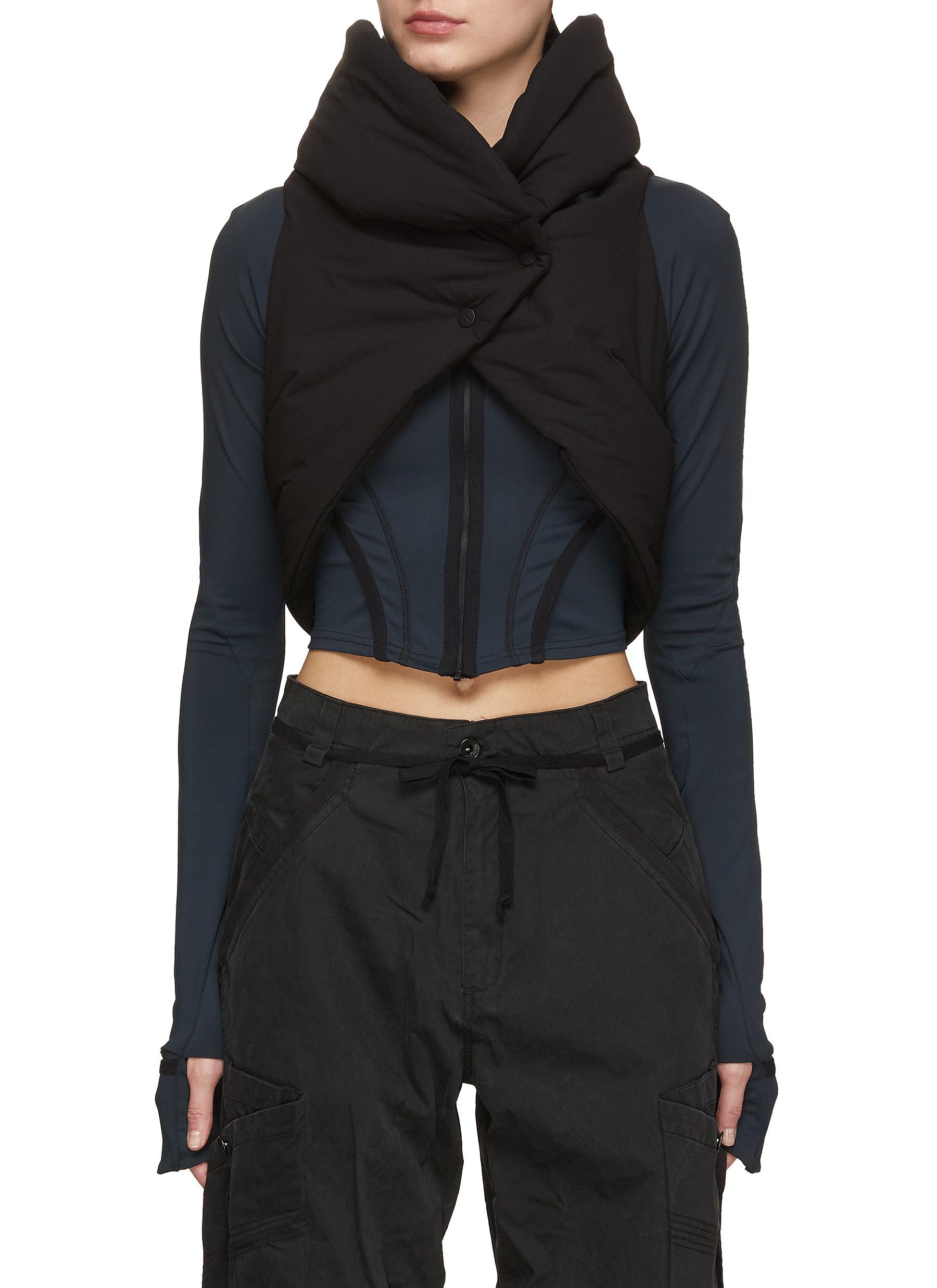 Origami padded packable polyester ripstop vest in warm black, from Hyein Seo. Features a paneled construction with button fastening at the front face, an oversized shawl collar, and two-way fastening along the spine. Concealed pouch compartment at the rear, and concealed pockets at either hip. Tonal stitching throughout [ Product details ] · Relaxed Fit · Shawl collar · Press-stud closure · Concealed zip pockets · Two-way VISLON® zip vent at back · Zip pockets at interior · Cinch shoulder straps at interior · Pouch with bungee-style drawstring at interior · Fully lined · Logo-engraved black hardware · Supplier color: Black · Imported [ Composition ] · Shell: 100% polyester · Fill: 100% polyester • Size: 2 (S/M) • Condition: Brand new with tag. • RRP: 148 000 ₩ Made in South Korea. Shipped worldwide via premium carriers (DHL Express, FedEx, UPS) within 48 hours after payment cleared. *Instruction for International Buyers: Estimated Delivery: About 5~10 days with Tracking Number. Import duties, taxes, and charges are included in the item price. #혜인서 #hyeinantwerp #hyeinseo #darkwear #kfashion #koreanfashion #avantgarde #blackaesthetics #blackinspo #madeinkorea #deibido