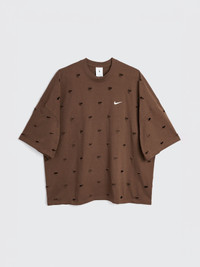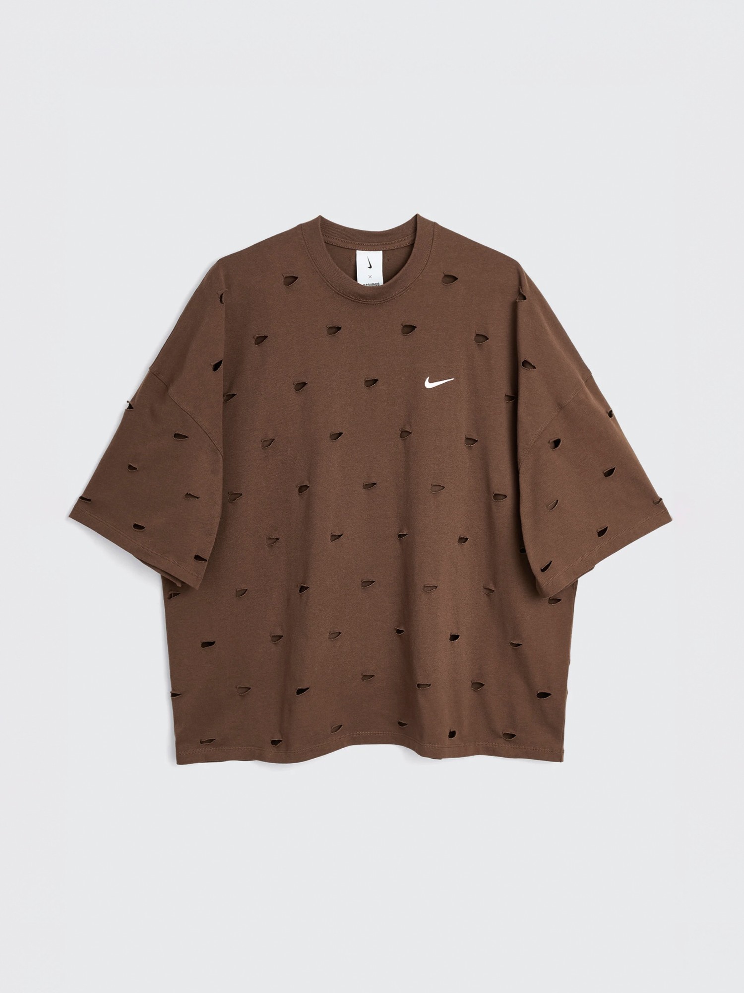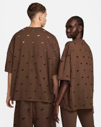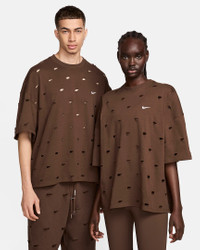 Go all out in this premium cotton tee. The allover Swoosh logo is laser-cut for precision and smooth edges that won't fray. Wear it alone or layered over another top for a subtle or bold look, your choice. Oversized T-shirt from in collaboration with the French designer Simon Jacquemus. Made from mid weight cotton jersey with Swoosh logo cut outs all over offering a slightly stiff drape and a structured feel. The sporty, relaxed fit is easy to layer. • Style: FJ3477-259 • Sizes available: XS / S / M / L / XL / XXL • Unisex • Ribbed collar • 100% Cotton • Do not machine wash • Colorway: Cocoa Wow • Condition: Brand New with tags • Worldwide shipping All orders are shipped via UPS within 1-3 days after payment cleared.