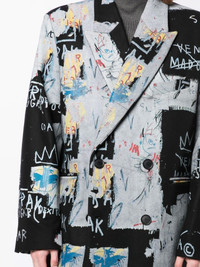 graphic-print double-breasted coat