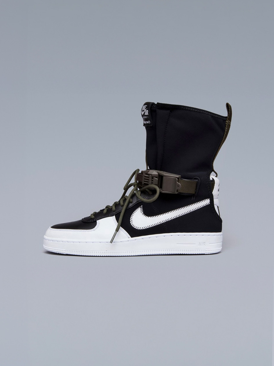 One of the rarest colorway from Errolson's infamous collab with the sportswear giant. The Nike × ACRNM® Air Force Downtown 1 Hi SP 'Black White'. Deadstock. Launched at NikeLab 21 Mercer in February 2017, the iconic revisited silhouette features a black and white premium leather upper with an extra-high soft-shell collar and a black exposed stitching on a white swoosh. An extended brass zipper runs up the medial side of the shoe, pleated paneling with a quick-release German mil-spec fastener strap, which is meant to contribute to a more supportive fit. And of course a white AF1 inspired sole. A must-have in your collection. For Techwear connoisseurs. IYKYK. • SKU: 649941-001 • Size: US 7/ EUR 40 Men's • Colorway: BLACK / WHITE-MEDIUM OLIVE • Condition: Like New with OG Box • Release date: 11/02/2017 Shipped worldwide via premium carriers (DHL Express, FedEx, UPS) within 48 hours after payment cleared. *Instruction for International Buyers: Estimated Delivery: About 5~10 days with Tracking Number. Import duties, taxes, and charges are not included in the item price. These charges are the buyer's responsibility. Please make sure to check out your country's customs office to determine what these additional costs will be prior to bidding or buying. #acrnm #acronym #af1 #airforce #avantgarde #errolsonhugh #hightop #techwear #techwearsneakers #rare #minimalaesthetics #snkrs #reversiblesneakers #collector #ogall #deadstock #deibido