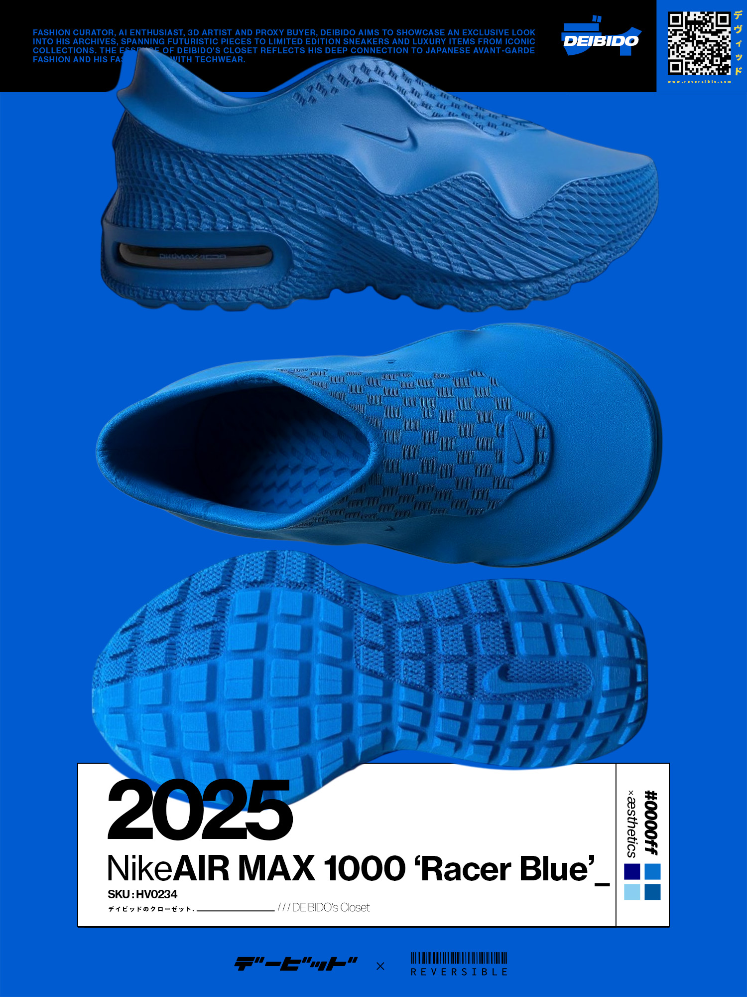Nike is heading straight into the future with the Air Max 1000. Gone are the traditional laces and stitching, this one-piece shoe is crafted using Zellerfeld's ultra-advanced 3D technology. The result is a molded upper that looks like it came straight out of a science fiction movie, with minimal details. Furthermore, this design follows Nike's eco-friendly approach: reducing waste during the manufacturing process. The shoe is completed with the "Made in Germany" inscription, which affirms the product's high-end influence. First unveiled in a full red colorway, the Air Max 1000 is also introducing four versions: Black, White, Orange, and Blue. Entirely 3D printed, The 'Racer Blue' version was exclusively available during Paris Fashion Week. First-come, first-served, around 1,000 lucky individuals were able to secure the blue colorway of the sneaker at the NikeLab storefront in Paris city, FRANCE, on June 27 and 28, 2025. Leading the 3D-printed sneaker scene, Zellerfeld has already a partnership with Solebox in Berlin, GERMANY, where shoes can be created in real time. Customers can now choose a design, scan their feet, and order footwear that is printed to match their exact shape. No wasted inventory. The Future of Sneakers. • SKU: HV0234 • Size: US 5 • COLORWAY: Blue / Racer Blue • CONDITION: Brand new with OG Box • RELEASE DATE: 27/06/2025 Ready-to-ship worldwide via premium carriers (UPS, DHL, FedEx) within 48 hours after payment cleared. *Instruction for International Buyers: Estimated Delivery: About 7~10 days with Tracking Number. Import duties, taxes, and charges are not included in the item price. #nike #AM1000 #airmax1000 #unisex #3dprintedshoes #zellerfeld #limitededition #avantgarde #blueaesthetic #parisfashionweek #futuristicfashion #corneliusschmitt #zellerfella