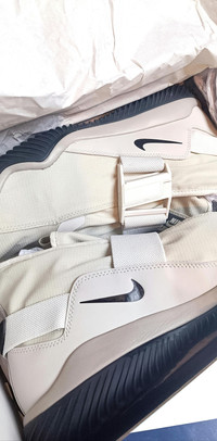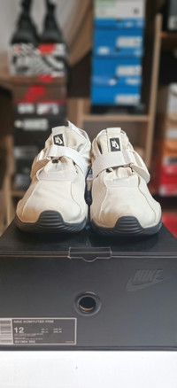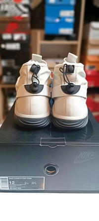 Rare Nike Komyuter Premium Light Bone / Black-Cobblestone (Deadstock). The Design impetus for the NikeLab ACG 07 KMTR (Komyuter) began with a paper bag over a foot, scrunched to form the shape of a shoe. That simple concept would lead to a silhouette that uses a single-piece, water-resistant upper with four-way stretch. It conforms to the foot by pulling on an integrated drawcord, with a forefoot strap included for added stability. The cool minimal upper is supported underfoot by a matching full-rubber sole unir with wet traction lugs. • Style: 921664-002 • Size: US 12 • Colorway: Light Bone / Black Cobblestone • Retail Price: $150 • Resell Price: $8K • Release Date: 14/09/2017