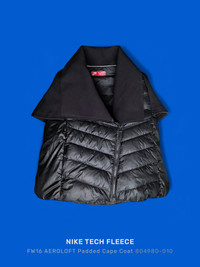 Nike Puffer Down Cape Coat Tech Fleece AeroLoft Black Women’s Small New NWT 804980-010 Dominates the sportswear industry with a fresh, stylish approach to casual apparel.Combining two innovative, lightweight technologies, the Nike Sportswear Tech Fleece AeroLoft Cape helps keep you warm and comfortable when cold weather comes calling. Its asymmetrical design and crossover collar give you a stand-out futuristic look. [ Product details ] - Super-lightweight down-insulated fabric - Durable water-repellent finish - Funnel Cowl neck - Wide-cut Nike Tech Fleece sleeves - Two direction front zip - Traps heat to keep you warm - Asymmetric zip fastening - Functional pockets - Loose fit - falls loosely over the body - Machine wash - 100% Polyester - Model wears a size S and is 175cm/5'9" tall - Made in Vietnam • Style ID: 804980-010 • Size: S • Condition: Like New without tag. • RRP: € 323,99 EUR Ready-to-ship worldwide via premium carriers (DHL, FedEx, UPS) within 24 hours after payment cleared. *Instruction for International Buyers: Estimated Delivery: About 5~10 days with Tracking Number. Import duties, taxes, and charges are not included in the item price. #nike #fw16 #sportswear #niketech #techfleece #activewear #darkwear #womenswear #deibido