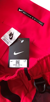 Series 003, one of the most noticeable collection from Nike and 1017 ALYX 9SM designer Matthew M Williams looks at the relationship between data-driven design and the natural human form, using both sides to influence the performance-focused garments. Built to thrive outside, both in the city and further afield, these red women’s trousers team a lightweight polyester construction with an integrated belt and adjustable zipped cuffs for comfortable wear. To further allude to their performance intentions, they’re finished with a detachable towel for the perfect post-workout wipe down. · 100% Polyester · Integrated Belt · Detachable Towel · 2 Side Pockets · Back Pocket · Printed Branding · Zipped Cuffs · Imported • Style ID: CK1545-657 • Condition: Brand new with tag • MSRP: €219.00 EUR Shipped worldwide via premium carriers (DHL Express, FedEx, UPS) within 48 hours after payment cleared. *Instruction for International Buyers: Estimated Delivery is about 7~10 business days with Tracking Number. Delivery times may vary based on the destination. Import duties, taxes, and charges are not included in the item price. #nike #mmw #matthewmwilliams #unisex #sportswear #techwear #pants #activewear #avantgarde #blackandred #redaesthetics #minimalfashion