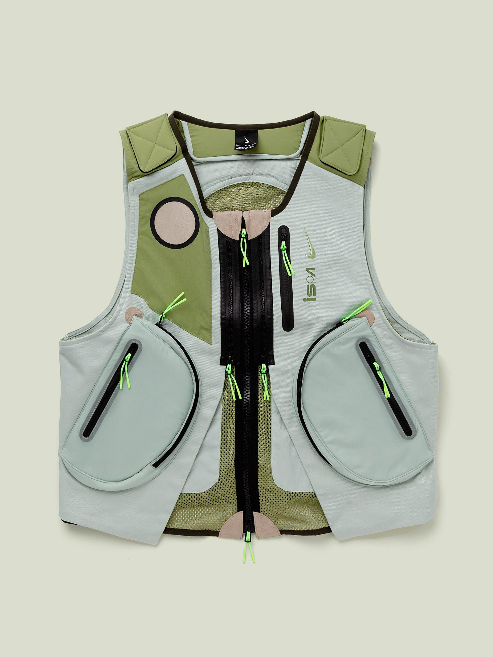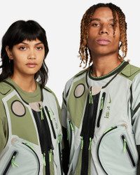Nike ISPA Unisex Techwear Vest 2.0 made from a durable outer layer that provides water-resistant protection from the elements, while the inner layer is made from cool, breathable mesh for long-lasting comfort. Zippered pockets with pocket organizers allow you to securely store your personal items, and two-way zippers let you personalize coverage, airflow including your style. - Body, Panels Lining: 98% cotton / 2% spandex/elastane - Back Panel, Underlay: 100% polyester - Back Pocket, Lower Pocket Overlay: 94% nylon / 6% spandex - Front Pocket: 100% nylon - Pad Top Fabric: 79% polyester / 21% spandex - Pad: 100% polyethylene - Standard fit - Two-way zipper - Zippered pockets with pocket organizers - Multi-purpose back pockets - Machine wash • STYLE ID: FB2375-034 • SIZES AVAILABLE: S / M / L / XL • CONDITION: BRAND NEW • COLORWAY: SEQUOIA / ALLIGATOR / LIGHT SILVER • RETAIL: $175 USD • WORLDWIDE SHIPPING Shipped worldwide via UPS within 3-5 days after payment cleared. #nikeispa #sleeveless #vest #techwear #greenaesthetics