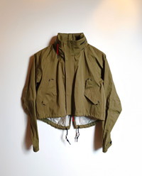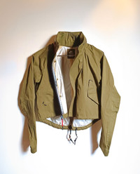 NikeLab Running Run Division Storm-FIT Windbreaker (Deadstock). Rare short waterproof and futuristic windbreaker in khaki. The fabric is comfortable yet light. Hood integrated in the collar. • Style: 426751-200 • Size: S • Condition: Very good. *One-click closure is unfortunately missing. Feel free to contact me @deibido for any info.