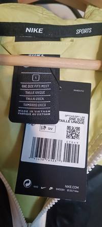 Nike Men's Women's Poncho Windrunner Jacket CJ5059-367 Windbreaker Coat 1 Size OS. Perfect for any occasion, whether it is activewear or casual, the jacket is machine washable, ensuring that it is easy to maintain and keep clean. Additionally, this poncho is brand new with tags and fits one size unisex. SIZE: One Size. STYLE: CJ5059-367. COLORWAY: BEIGE / BLACK / PISTACHE CONDITION: BRAND NEW with tags • 100% Polyester • Hood with rubber-dipped drawcords • Oversized graphic on the chest • Multiple snaps for better adjustibility • Durable, water-resistent fabric • one-size-fits-most For any further information, please feel free to reach out via DM. Your order will be shipped out within 1-3 days after payment cleared. 💬🚚💨✈️📦🌏 All orders ship worldwide through affiliated carriers (DHL Express, FedEx, UPS, Chronopost).